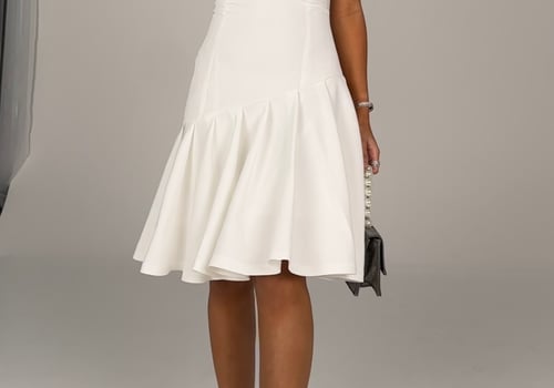 White dress with delicate cap sleeves, a fitted bodice, and a flared pleated hem that creates a playful yet elegant silhouette. A timeless piece that’s perfect for graduation and other special moments.